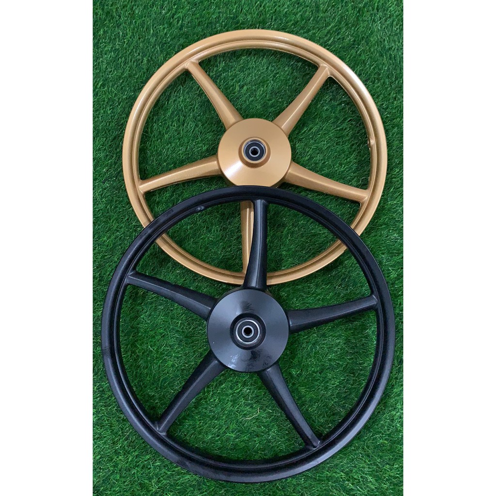 Sport rim enkei sp522 ready stock #brand enkei #siap bearing dengan bush #wave100 / ex5 dream / ex5 high power #hitam kilat / gold / matte black #size .